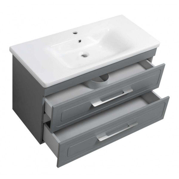Тумба Атлас Т-8 з умивальником Еліз 100 з дотягом підвісна сіра (07015) | ||||||||||