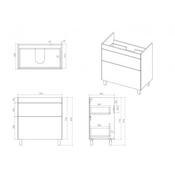 Тумба Монако Т-8 з умивальником Олівер 80 чорна (02012) | ||||||||||