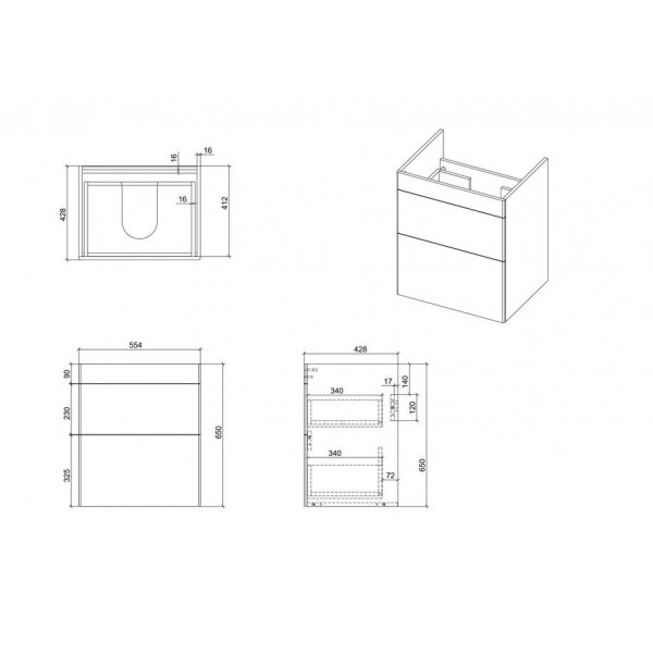 Тумба Монако Т-8 з умивальником Олівер 60 біла підвісна (02007) | ||||||||||
