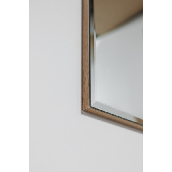 Це дзеркало створене з урахуванням щоденних потреб — воно має ідеально відшліфовану поверхню, яка не спотворює зображення. Завдяки захисному покриттю скло не боїться вологи, а дерев’яна рамка оброблена для підвищеної стійкості до перепадів температур і вологості, характерних для ванних кімнат.