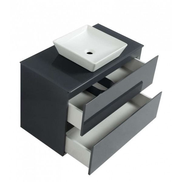 Для максимального комфорту використання, ящики обладнані системою дотягів прихованого монтажу, що забеспечує зручне закриття і відкриття без небажаних звуків чи пошкодженнь. Частиною комплекту є сучасний умивальник. В комбінації з тумбою вони створюють дизайнерський комплект меблів.