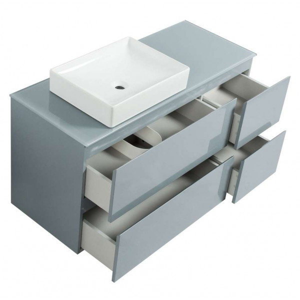 Тумба Вельма Т-8 зі скляною стільницею 120 см сіра + чаша Грейс (01069) | ||||||||||