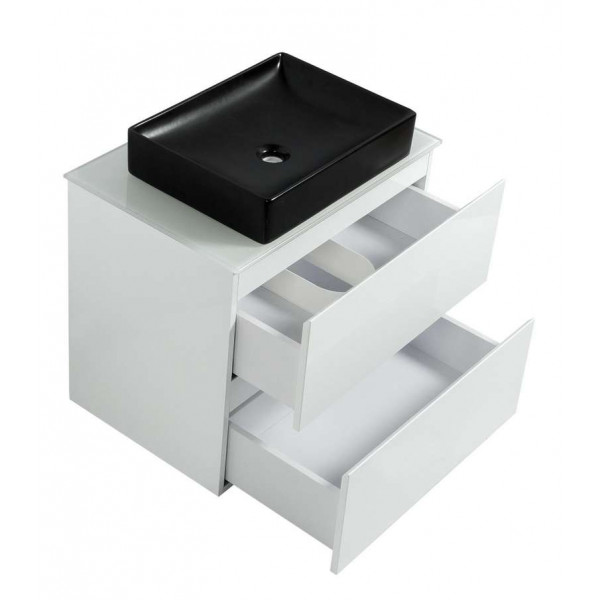 Тумба Вельма Т-8 зі скляною стільницею 60 см біла + чаша Грейс чорна (01005) | ||||||||||