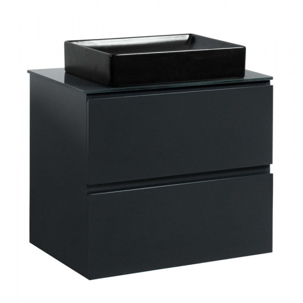 Тумба Вельма Т-8 зі скляною стільницею 60 см графіт + чаша Грейс чорна (01009) | ||||||||||