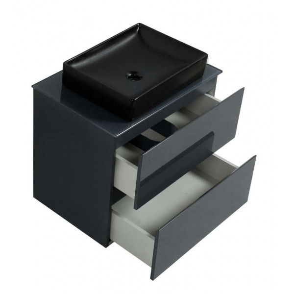 Тумба Вельма Т-8 зі скляною стільницею 70 см графіт + чаша Грейс чорна (01021) | ||||||||||