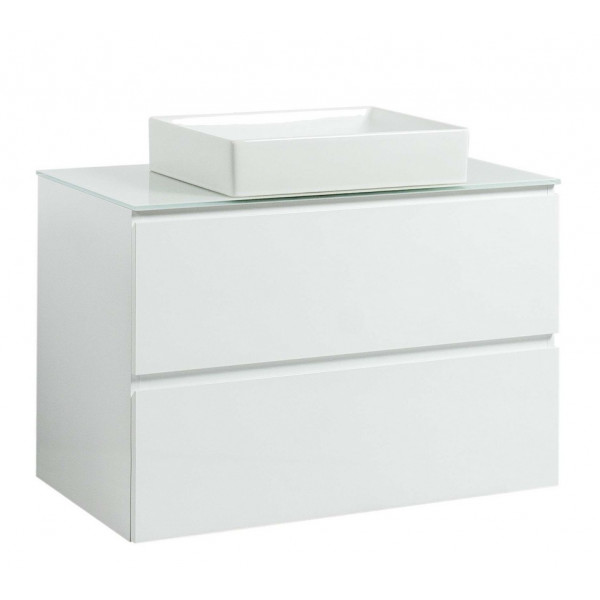 Тумба Вельма Т-8 зі скляною стільницею 80 см біла + чаша Грейс (01029) | ||||||||||