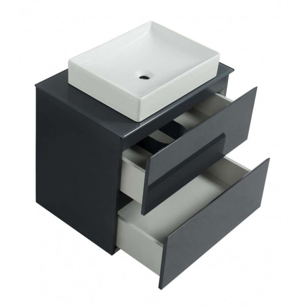 Тумба Вельма Т-8 зі скляною стільницею 60 см графіт + чаша Грейс (01008) | ||||||||||