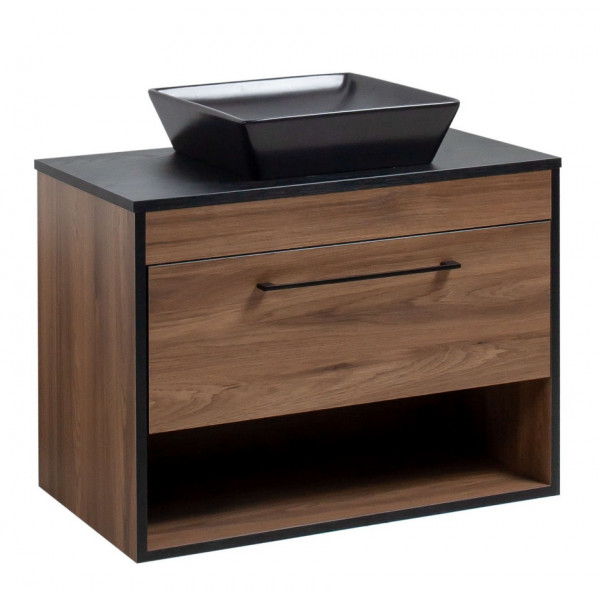 Тумба Хілтон Т-3 зі стільницею 80 чорн.дерево/дуб Валенсія + чаша Адель чорна (05017) | ||||||||||